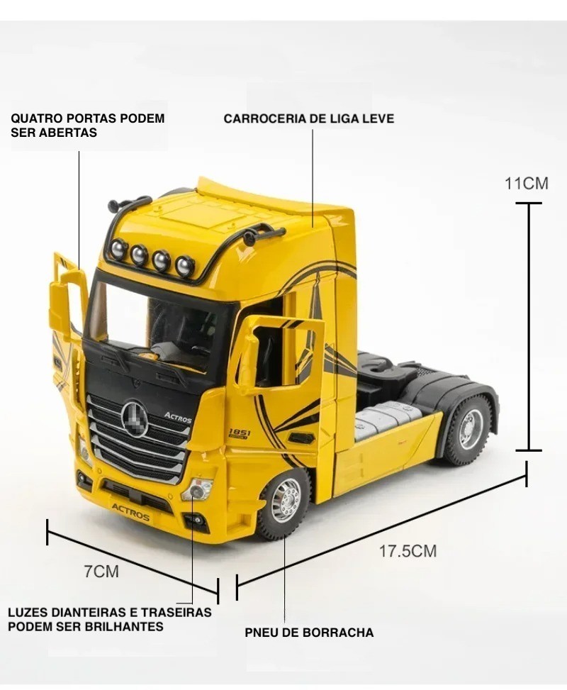 Se você é fã de caminhões de alto desempenho, engenharia de precisão e miniaturas colecionáveis, o Mercedes-Benz Actros em liga metálica é o item perfeito para a sua coleção! 😍 Inspirado no icônico modelo original, essa réplica captura todos os detalhes que fazem do Actros um verdadeiro símbolo de força e inovação no transporte rodoviário.