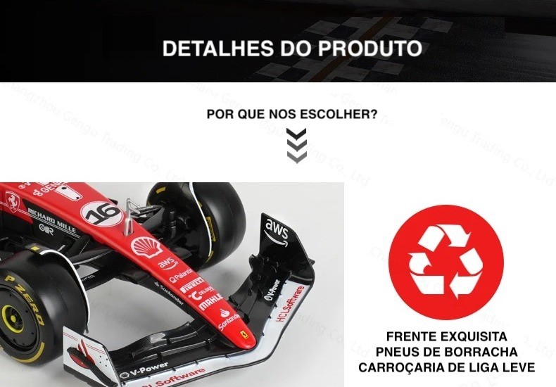 Apaixonado por Fórmula 1? Fascinado pela potência, precisão e emoção das pistas? Agora você pode levar toda essa adrenalina para sua casa com a miniatura colecionável em escala 1:18 da Ferrari SF-23, modelo pilotado por Charles Leclerc (#16) e Carlos Sainz (#55) na temporada 2023. Esta é a peça que faltava na sua coleção!