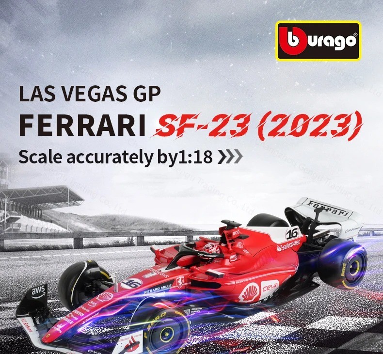 Com produção de alto nível e acabamento premium, essa réplica fundida em metal (die-cast) recria com perfeição os mínimos detalhes da icônica SF-23, seja na versão tradicional ou na desejada LV (Liberty Version), usada em corridas especiais como o GP de Las Vegas.