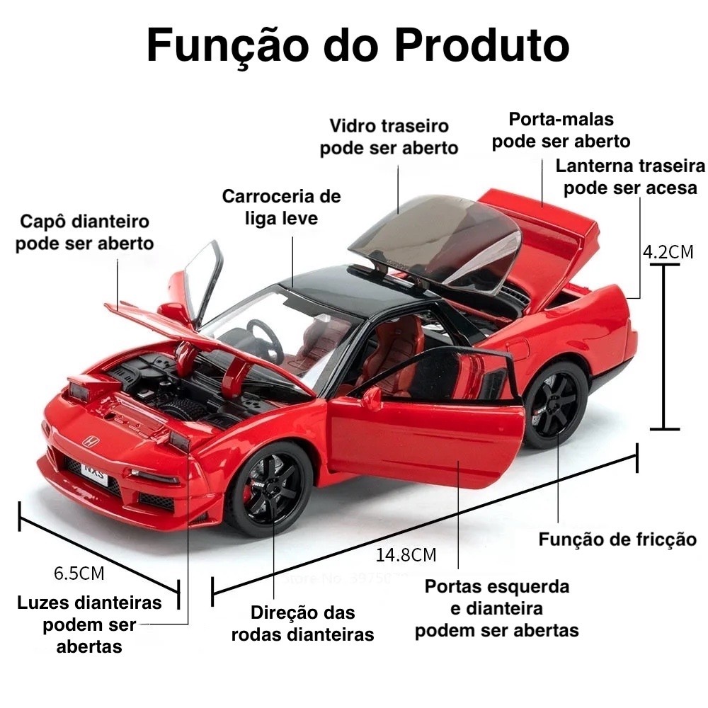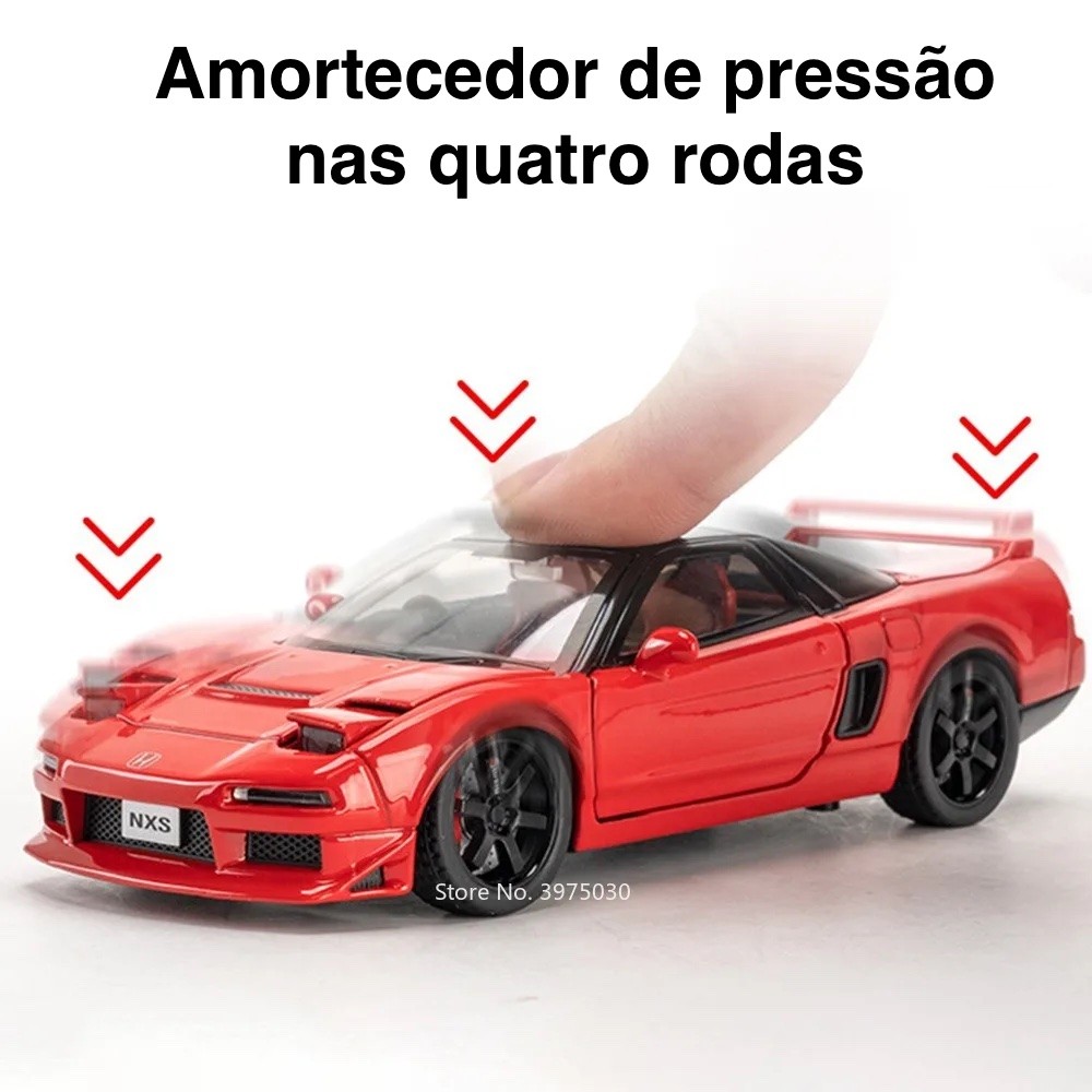 O Honda NSX é conhecido por combinar tecnologia de ponta, desempenho esportivo e um design aerodinâmico que chama atenção por onde passa. Agora, você pode ter toda essa sofisticação em uma miniatura escala 1:32, com 5 portas funcionais (capô, porta-malas e portas laterais), rodas livres e acabamento refinado que imita com perfeição o carro real.