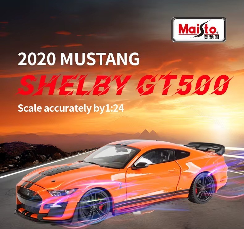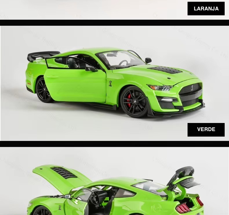 1x Miniatura Maisto 2020 Mustang Shelby GT500 1:24 na cor escolhida (Verde ou Laranja)